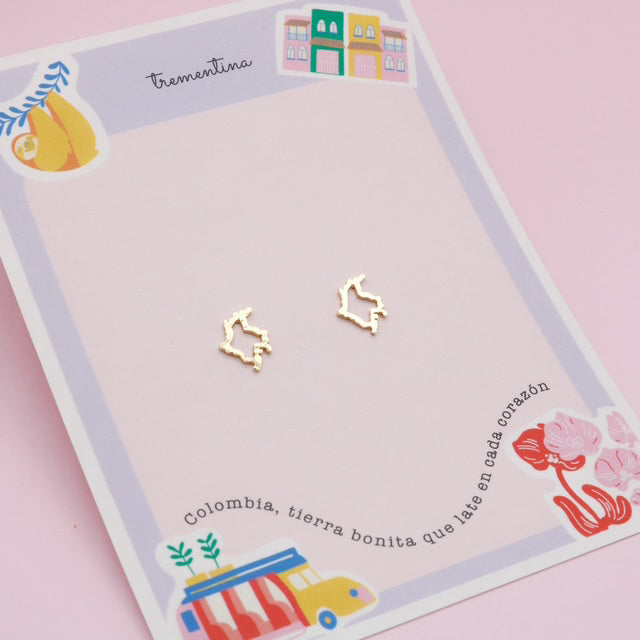 Colección Colombia es un homenaje hecho joya. Cada pieza fue elaborada a mano en técnica de calado sobre metal, con detalles que representan el mapa y símbolos que nos conectan con nuestras raíces.