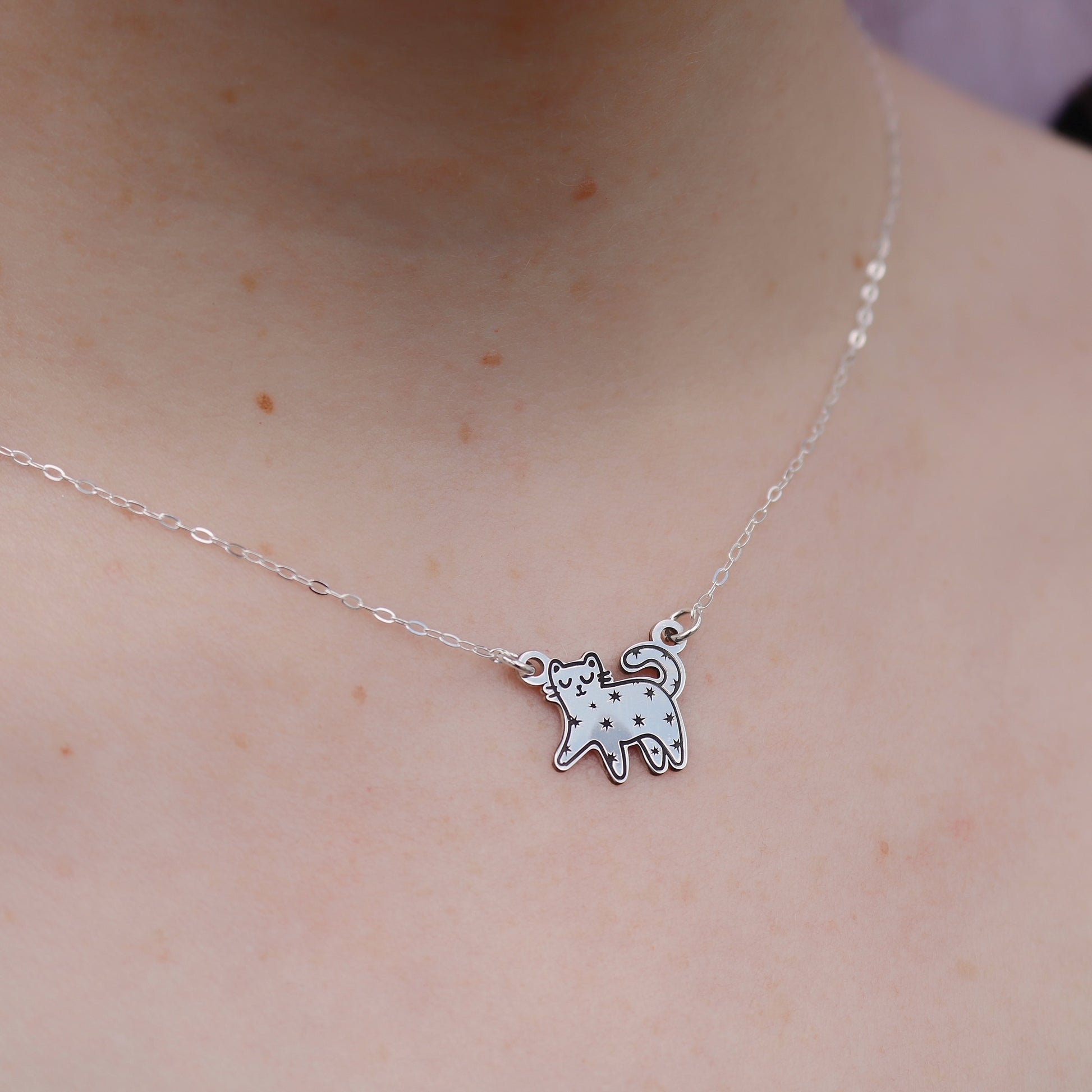 Collar De Plata Gatico Estrellado