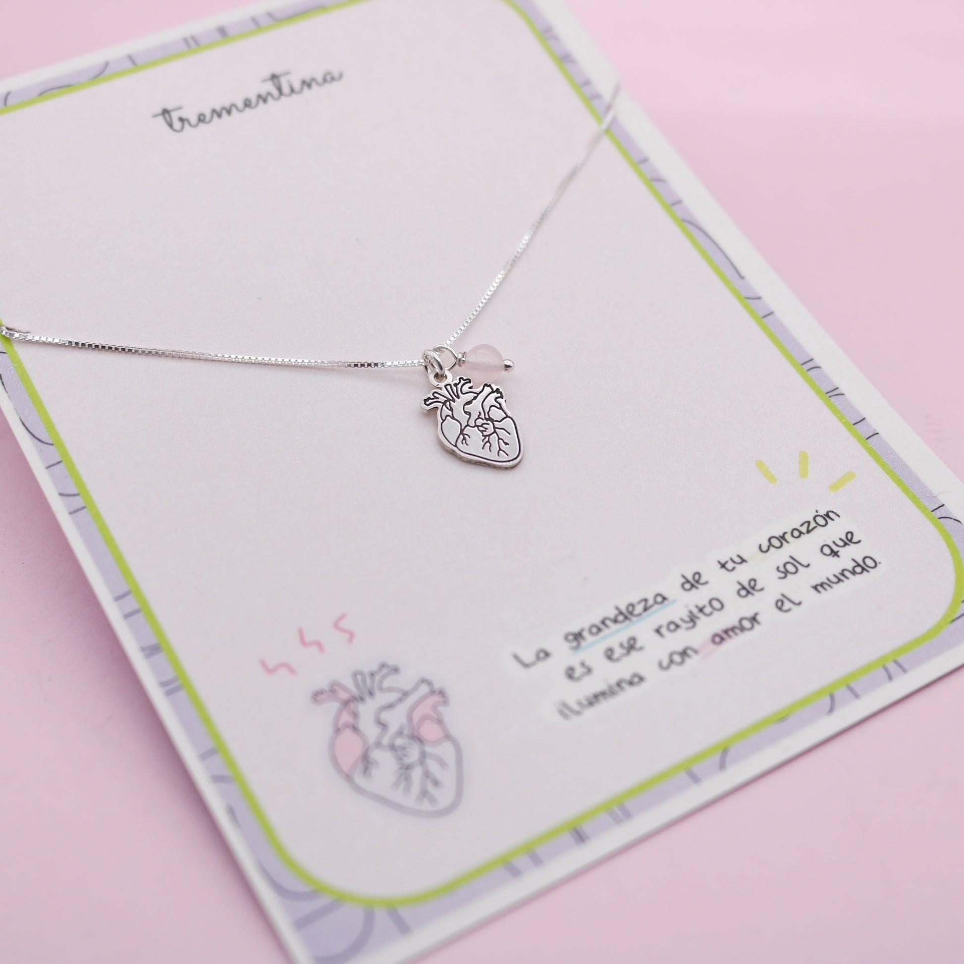 Collar de Plata Un Corazón que Late Cuarzo Rosa