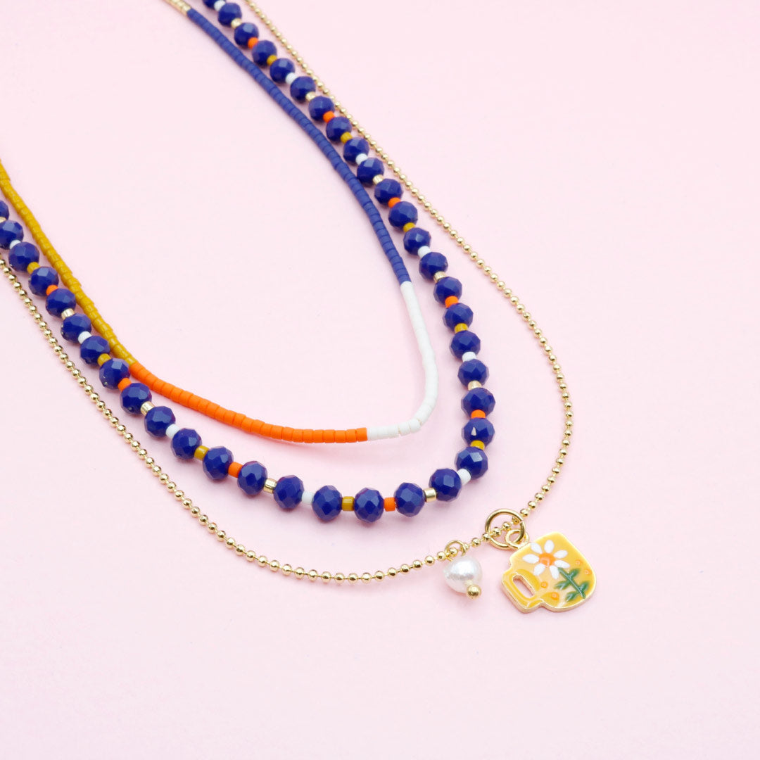 Un collar que celebra los detalles y la alegría de lo simple. La flor como símbolo de crecimiento, color y energía bonita, combinada con capas que se mueven contigo y llenan cualquier look de luz y personalidad.