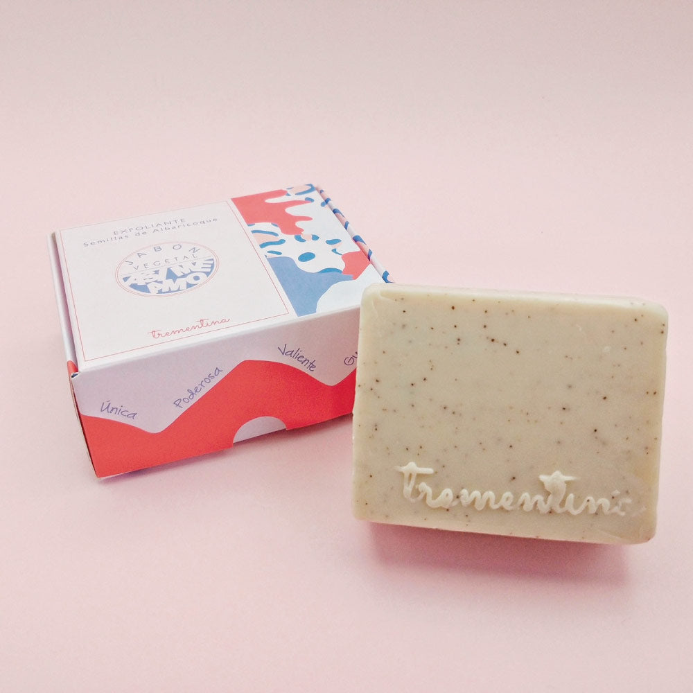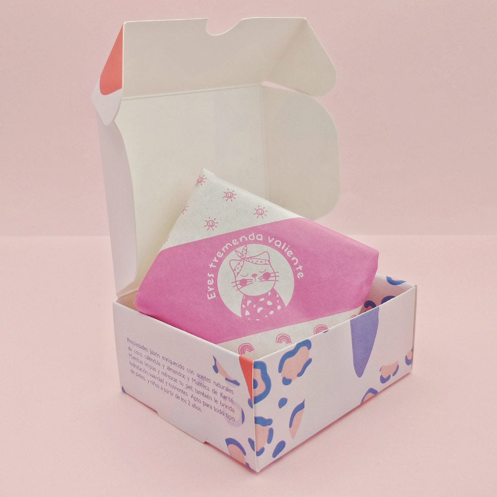 Jabón enriquecido con aceites naturales de coco, caléndula y almendra; Manteca de Karité.