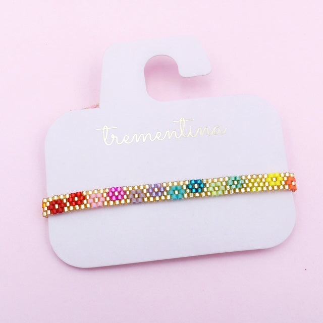 Cada pulsera de mostacilla está tejida a mano con amor, color y dedicación.