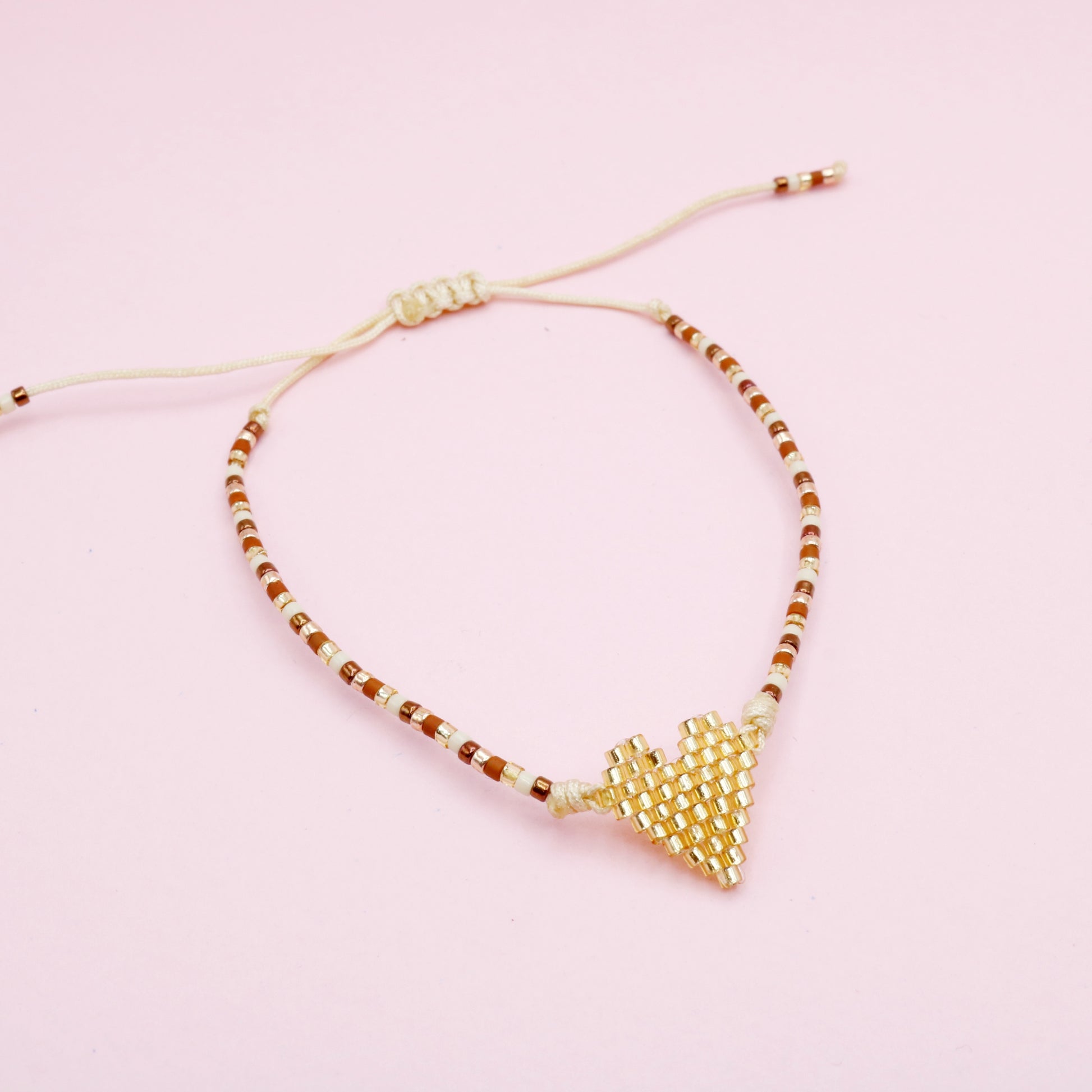 Pulsera Sencilla Mostacilla Corazón Dorado