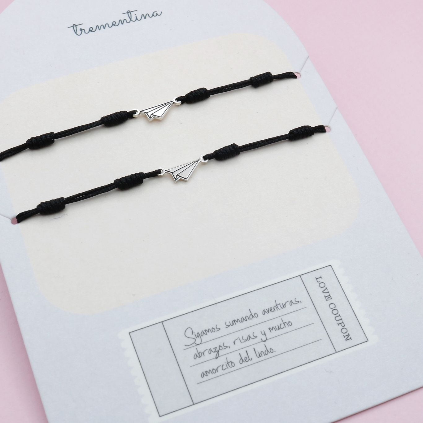 Set de Dos Pulseras Dije de Plata Avioncito en Origami
