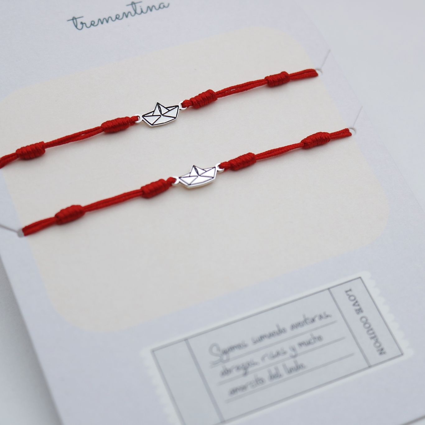 Set de Dos Pulseras Hilo Barquito de Papel Origami