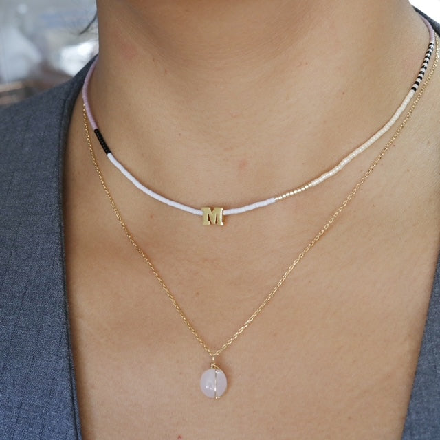 Set Dos Collares Letra Dorada Cuarzo Rosa