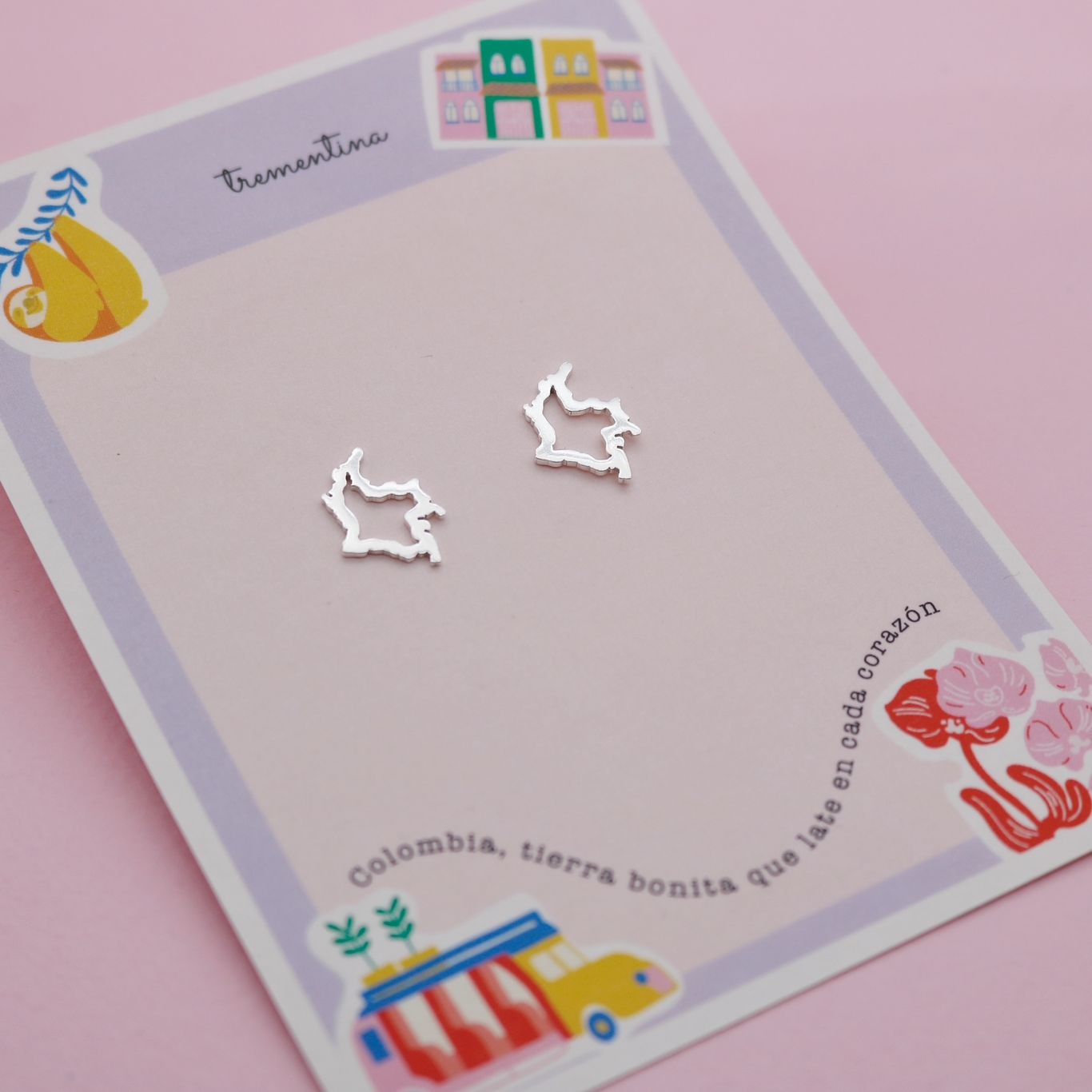 Colección Colombia es un homenaje hecho joya. Cada pieza fue elaborada a mano en técnica de calado sobre metal, con detalles que representan el mapa y símbolos que nos conectan con nuestras raíces.