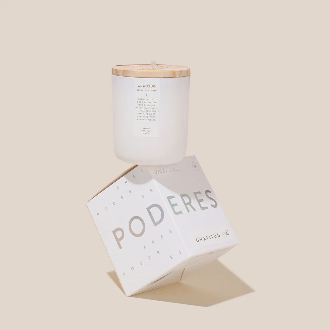 Enciende el poder de tu intención. Esta vela tiene un ritual para que enciendas el poder de la GRATITUD. Tiene un hilo con CRISTAL DE CUARZO que queda cargada con tu intención.